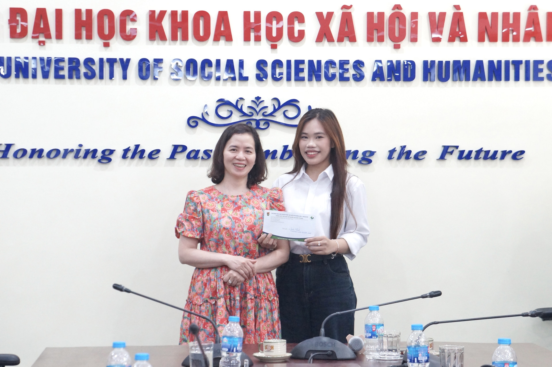 Đại diện Trung tâm Khoa học Hành chính và Văn thư - Lưu trữ (SCARMA) trao giải thưởng cho cá nhân/nhóm sinh viên.